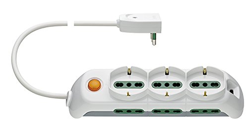 Vimar fp00531.x.b presa mobile multipla 2p+t 16 a 250 v, 3 uscite sicury universale, 6 uscite sicury standard italiano tipo p17/11, interruttore luminoso, 5 m cavo 3g1 mm2 e spina orientabile ricollegabile 2p+t 16 a standard italiano tipo spb17, bianco