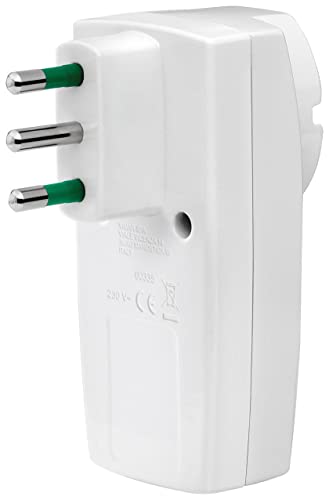 Vimar 00335.B Adattatore multiplo SICURY 230 V~, bianco - max 1500 W, spina 2P+T 16 A standard italiano S17, presa 2P+T 16 A universale standard italiano P40, interruttore luminoso, controllo locale o da remoto mediante App