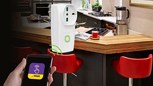 VIMAR Presa intelligente WiFi 00335.B, adattatore multiplo compatibile con Alexa e Google home, spina 16A, presa universale da 16A, comando vocale e telecomando con App View, Bianco
