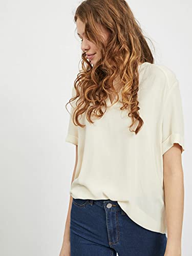Vila VIMOASHLY V-Neck S/S Top/su Camicia da Donna, Betulla, 48