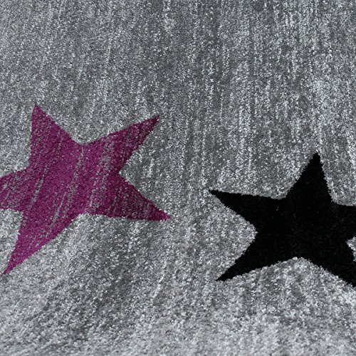 VIMODA Tappeto Moderno Design Grigio Lilla Nero Bianco Camera Ragazzi Pelo Corto Stelle Motivo - Pratico e Top qualità - Viola, 80x150 cm