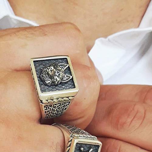 ViMon Anello Chevalier Lupo da Uomo Regolabile in Argento 925, Pacchetto Regalo più Panno per pulirlo (28)