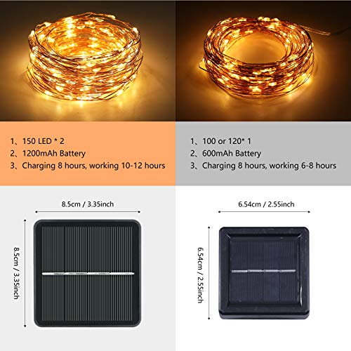 VIMOV [2 Pacchi] Luci Solari Esterno, 15M 150 LED Catena Luminosa Solare Impermeabile IP65 con 8 Modalità, Luci a Stringa Solari con Accensione/Spegnimento Automatico per Decorazione (Bianca Calda)