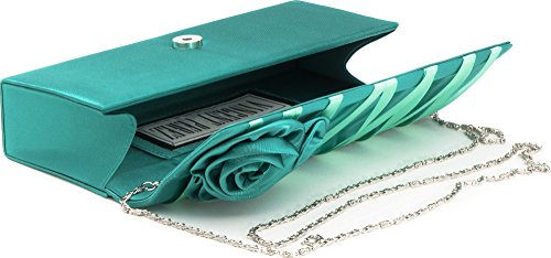 VINCENT PEREZ Borsetta, Borsa a tracolla, Pochette di raso con rose decorative, perline decorative e tracolla rimovibile (120cm),Colore:Verde(Smeraldo)