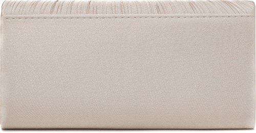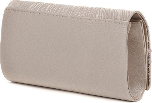 VINCENT PEREZ Borsetta, Borsa a tracolla, Pochette di raso increspato con eleganti rose decorative e tracolla rimovibile (120cm),Colore:Beige/marrone chiaro