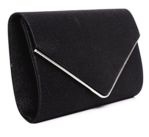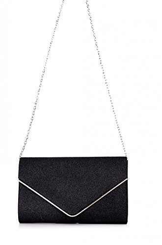 VINCENT PEREZ Borsetta, Borsa a tracolla, Pochette di raso increspato, fiocco con strass e tracolla rimovibile (120cm),Colore:Nero