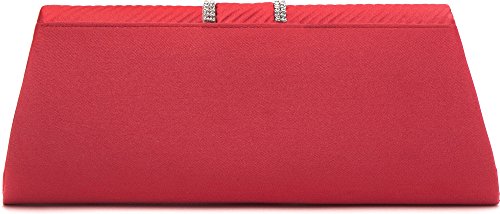 VINCENT PEREZ Borsetta, Borsa a tracolla, Pochette di raso increspato con strass e tracolla rimovibile (120cm),Colore:Rosso (Corallo)