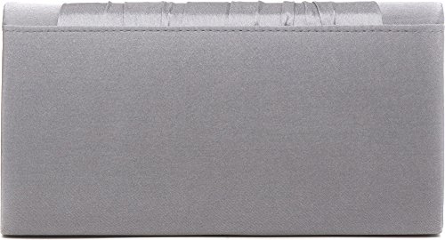 VINCENT PEREZ Borsetta, Borsa a tracolla, Pochette di raso increspato con strass eleganti e tracolla rimovibile (120cm),Colore:Grigio