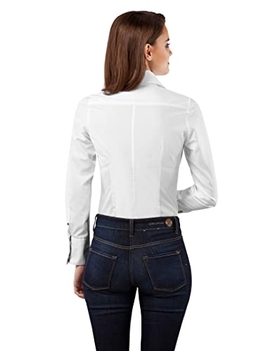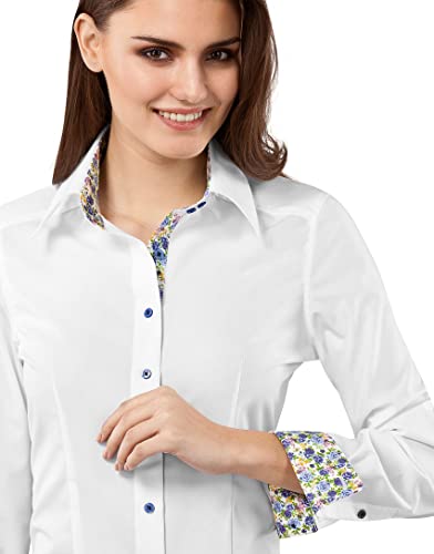 Vincenzo Boretti Camicia da donna modern-fit, maniche lunghe, tinta unita con contrasti, non si stira bianco 46