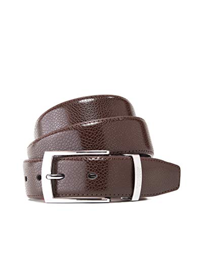 Vincenzo Boretti Cintura uomo in pelle con fibbia ad ardiglione argento, superficie di serpente, logo di metallo marrone scuro 85 cm