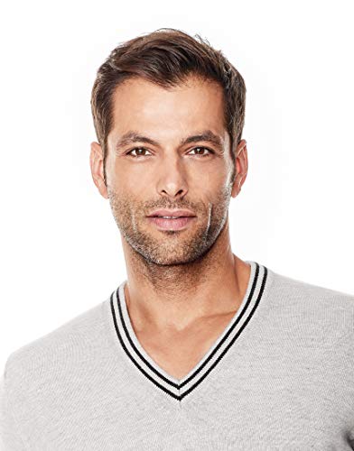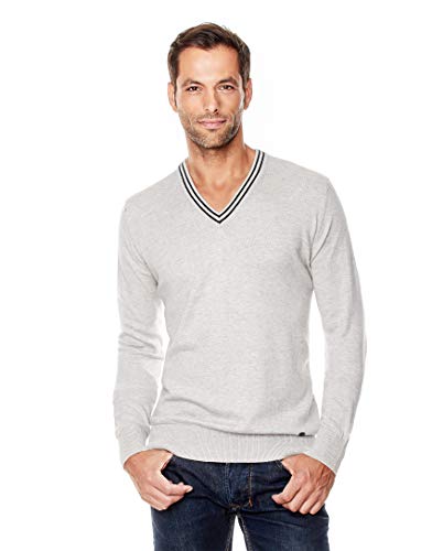 Vincenzo Boretti Maglia-Pullover Elegante da Uomo, Collo con Righe in Contrasto, Profonda Scollatura a V, Manica-Lunga, Aderente, Caldo, Ideal per Inverno, Autunno, Mezza Stagione Grigio XL