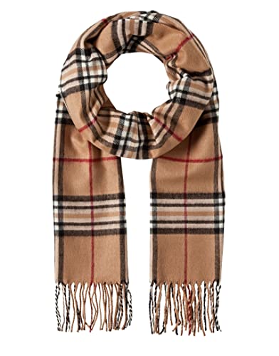 Vincenzo Boretti sciarpa invernale per uomo e donna classica, leggera e morbida - a quadri - con sfrangiatura, morbida come il cachemire beige