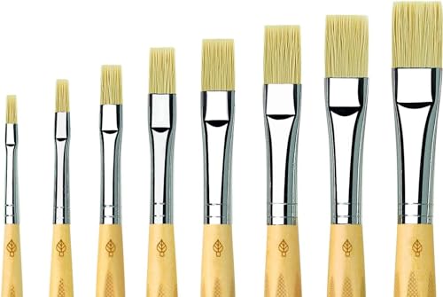 fibre resistenti, presa a manico corto, combinata con una ghiera argentata predisposta ad anello.I pennelli piatti sono ideali per dipingere aree più grandi di una grande opera d'arte. Le spazzole sono progettate principalmente per i rifiuti scolastici. Tuttavia, vanno anche dagli artisti dilettanti ai professionisti.