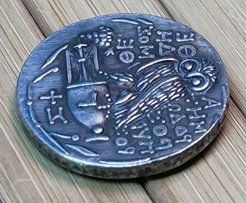 Vinciann Copia Moneta Antica Grecia tetradramma Athena con Elmo Piumato Civetta 2.8cm