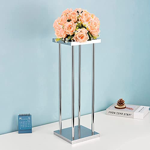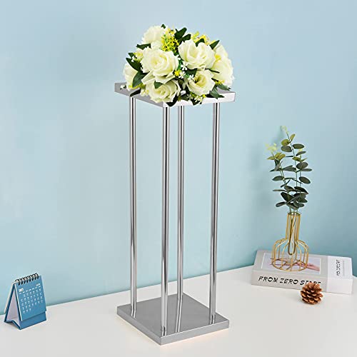 Vincigant 2 Pezzi Portafiori Da Matrimonio In Argento, Supporto Per Fiori In Ferro, Supporto Per Colonna Vaso Geometrico, Espositore Per Fiori, Decorazione Della Festa Di Nozze(Altezza 31,5 Pollici)