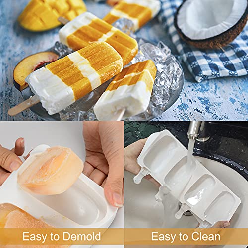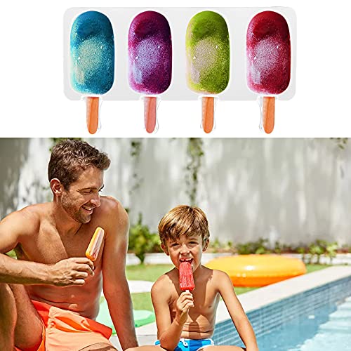 【Ottimo regalo fai da te】 Il set di stampi per gelato include 2 stampi a 4 cavità e 100 bastoncini di legno. Puoi fare 8 ghiaccioli alla volta. La dimensione complessiva dello stampo è 16,38 * 1,92 * 0,83 pollici e la dimensione della singola cavità è 2,68 * 1,5 * 0,8 pollici