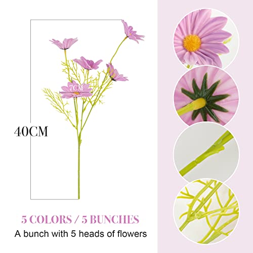 VINFUTUR 5 Mazzi Margherita Artificiale Margherita Finta Fiori Artificiali Margherita per Bouquet DIY Matrimonio Festa della Mamma Decorazione Domestica Festa Casa Nozze