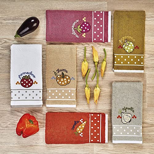 Vingi Set 3 Strofinacci da Cucina in Spugna 100% Cotone, 45x70cm, Multicolore con Disegno Ricamato, Set di Panni Morbidi, (Disegno 14)