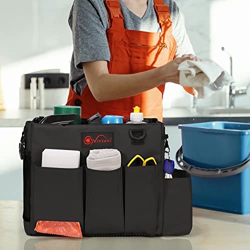 Vinsani Borsa portaoggetti multifunzionale con manico e cinghie regolabili in vita e tracolla per la pulizia, casa, artigianato, auto e giardino, nero medio