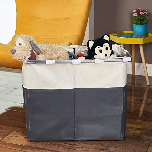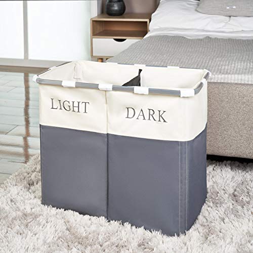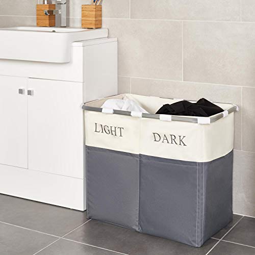 Vinsani - Cestino pieghevole per bucato con luci e scure, 2 scomparti, in metallo, colore: Grigio