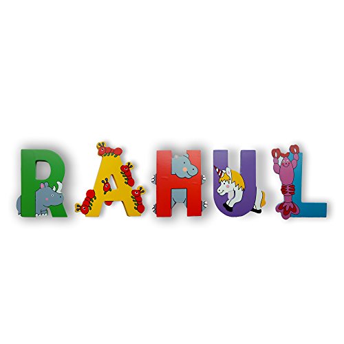 Alta qualità: ogni lettera ha un adesivo autoadesivo. Le lettere sono dipinte e realizzate in legno. Ogni lettera con un animale che prende il nome dalla lettera selezionata è disponibile in 2 colori