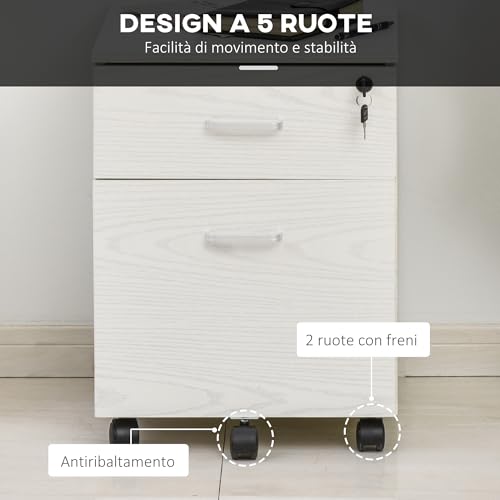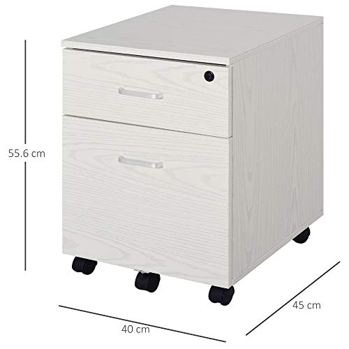 Vinsetto Cassettiera Portadocumenti da Ufficio in Legno Bianco con 2 Cassetti 40 x 44 x 54.6cm