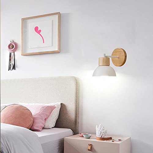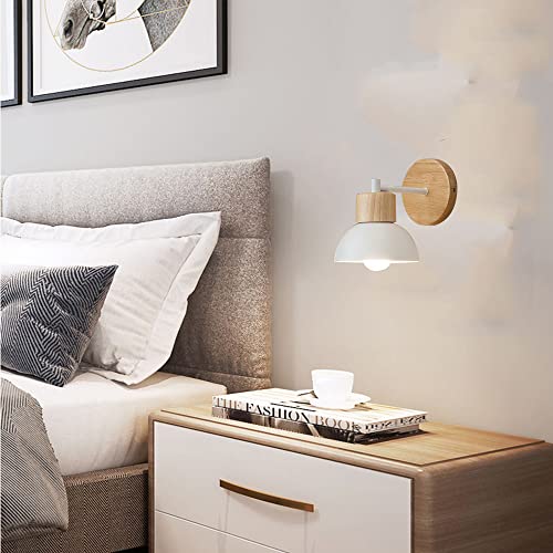 E27 Vintage Applique da Parete Interno Retro Metallo Legno Lampada Muro Lampada da Parete Lampada Muro Ferro per Camera da Letto Soggiorno Bagno Corridoio Sala da pranzo Ristorante, Bianca
