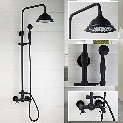 Vintage Bagno Doccia Nera Set A Parete 8 Pollici Doccia A Pioggia Miscelatore Rubinetto Rubinetto 3 Funzioni Set Di Miscelatore