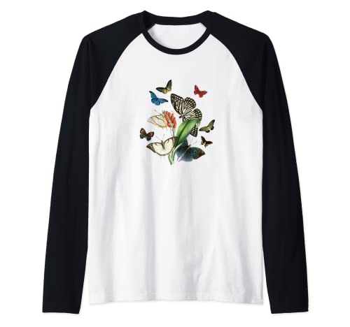 Vintage Botanical Butterfly specie camicia Tshirt Maglia con Maniche Raglan