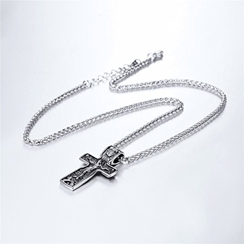 U7 Vintage Collana Croce Uomo con Gesù, Argento Crocifisso Collana Uomo, 50+5 cm Catena Ciondolo Crocifisso Gioiello Religioso, Regalo Amuleto per Cristiano Cattolico Ragazzo