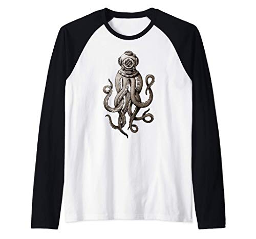 Vintage Deep Sea Diver, Cthulhu Octopus, Release the Kraken Maglia con Maniche Raglan