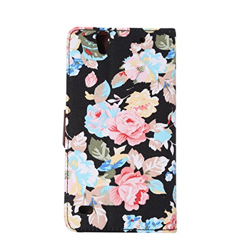 Vintage fiore nero magnetico Slot di vibrazione TPU Jacquard cuoio della carta di caso del basamento della copertura per il Sony Xperia C4