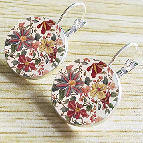 Orecchini da donna, con ciondolo rotondo con stampa floreale vintage.