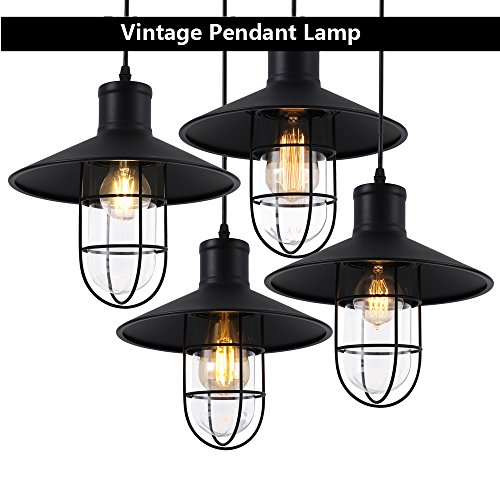 Vintage Industriale ciondolo lampadario lampadario infissi A Soffitto Metallo Ombra Attico caffè Cucina Bar Da parete Ciondolo Light Paralume(la lampadina include)Nero, 110 - 240V 60W E27, 310084