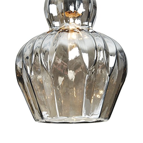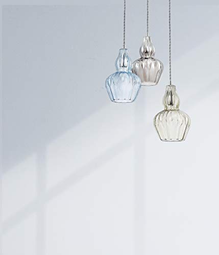 Vintage Lampada Pendente da Soffitto, A sospensione regolabile, Montatura in metallo cromato, Paralume Fatto a Mano, in vetro con tonalità grigio, Design insolito, per 1 lampadina E14 40W non incl