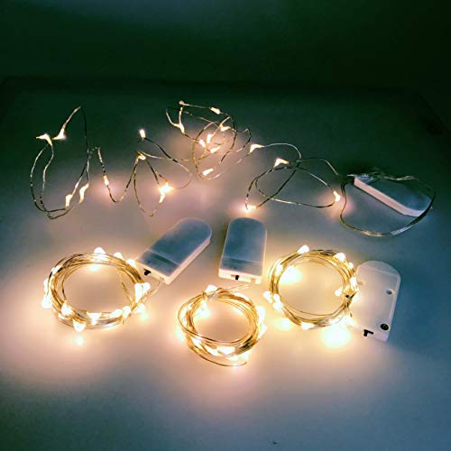 JZK 4 x vintage 2 metri 20 LED stringa luce lucine filo rame con batteria, striscia catena luci fata, ambra giallo bianco caldo
