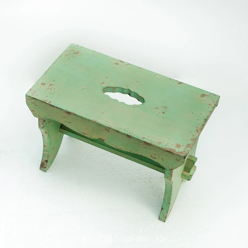 Vintage Painted Wood Stool Step Stool Wooden Footstool