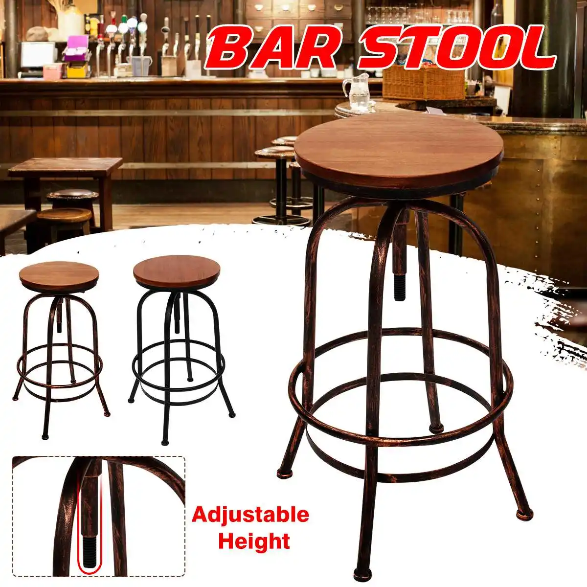 Vintage Bar Stool Industrial Retro Solid Wood Seat Bar Chair Adjustable Height Modern High Stool Kitchen Dining Chair Decoration