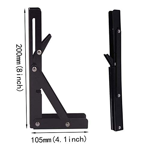 VintageBee 2 Pcs Folding Shelf Brackets 8 inch Black Heavy Duty Metal Triangle Table Bench Collapsible Shelf Bracket, Shelf Support Bracket Hinge Wall Mounted