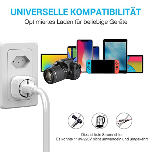 Adattatore da UE a Svizzera: la potenza nominale dell'adattatore è di 10 A, capacità massima fino a 3250 W (max 250 V 15 A). È compatibile con fotocamere, smartphone, laptop, rasoi, power bank, spazzolini da denti e altro ancora.