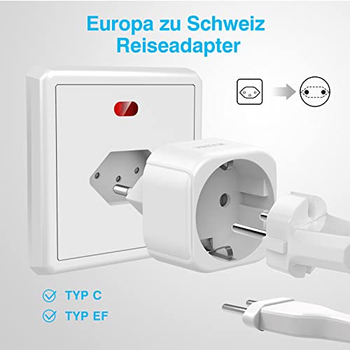 VINTAR 1PC Adattatore da Viaggio Svizzero, Adattatore da Viaggio da Germania/UE a Svizzera per Svizzera, Maldive, Ruanda, Liechtenstein Adattatore da Viaggio Tipo J, Approvato CE