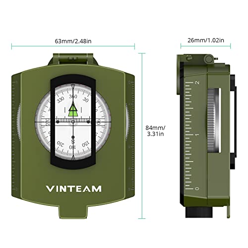 VINTEAM Bussola Militare in Metallo con Livella a Bolla Bussola Impermeabile per Campeggio Caccia Bussola Professionale con Custodia Cordino Bussola Geologia Multifunzione - Bronzeo