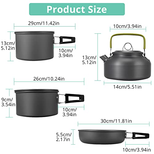 VINTEAM Kit Pentole e Padelle da Campeggio in Alluminio Pentole Set da Campeggio per 4 Persone all'Aperto Portatile Pentole Set Include Pentole Leggere Antiaderenti Bollitore Cavatappi ECC