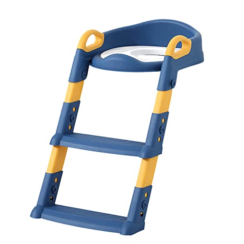 Vinteky Riduttore WC per Bambini con Scaletta Pieghevole Regolabile in Altezza Antiscivolo con Cuscino Scala Paraspruzzi Sedile da Allenamento con Sgabello (Blu)
