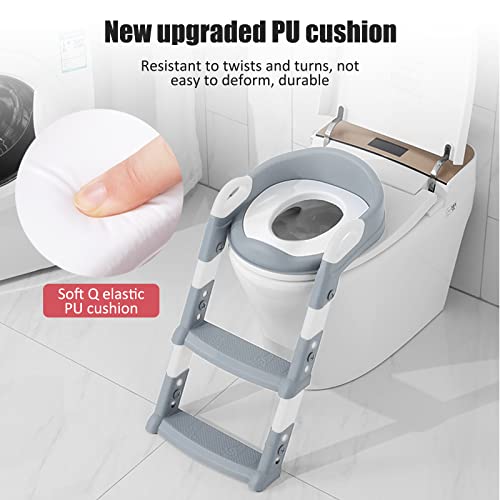 Vinteky Riduttore WC per Bambini con Scaletta Pieghevole Regolabile in Altezza Antiscivolo con Cuscino Scala Paraspruzzi Sedile da Allenamento con Sgabello (Grigio)