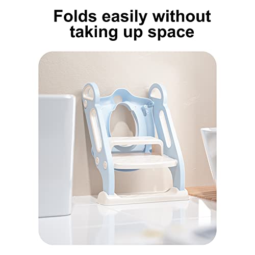 Vinteky Scaletta Gradini Vasi Riduttore WC per Bambini, Sedile Imbottito, Gradini Antiscivolo con Maniglia, per 1-8 Anni (Blu bianco)