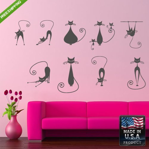 Wall Vinyl Decal Mural Sticker Beautyfull Animals Cat Cats Bedroom Design (Z098) by StickersForLife