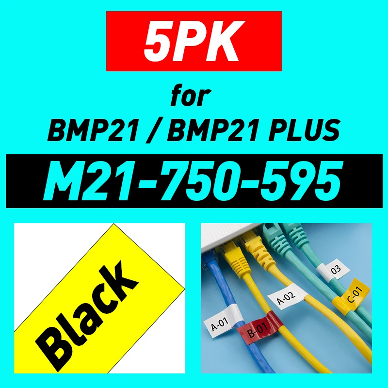 5PK Vinyl Label Tape M21 750 595 Black on Yellow Ribbon Compatible BMP21 Label Tape BMP21-plus BMP21-Lab bmp21 Labeler Printer