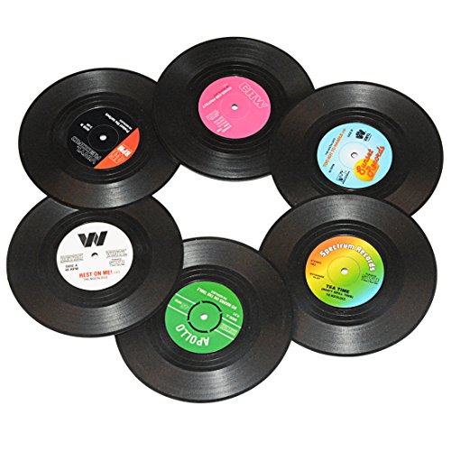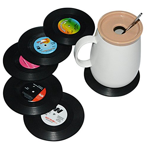 Decora il tuo tavolo o la tua scrivania con questi sottobicchieri creativi stile dischi in vinile. Sono un regalo perfetto per gli appassionati di musica. Completi di una fantastica scatola di presentazione in stile retrò.