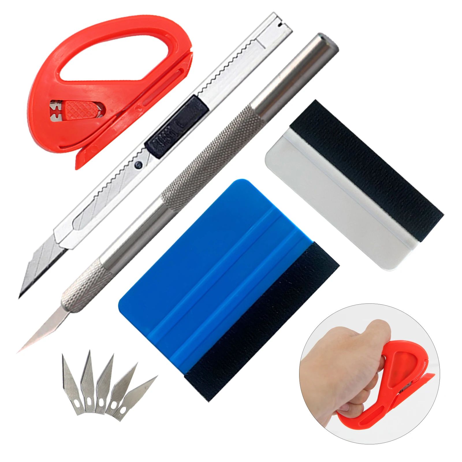 7 Pcs Car Vinyl Tint Film Wrapping Felt Squeegee Cutter Installing Tool Kit Glass Protective Window Including Squeegees Scrapers